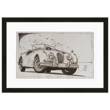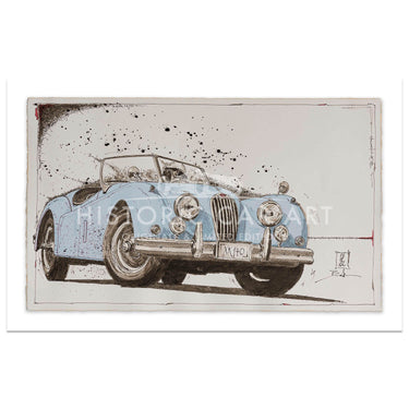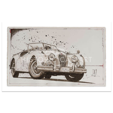 An art print of the Jaguar XK140, from an original ink drawing.