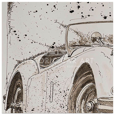 Aside from his automotive art activities, Becker is a “Petrol Head” through and through. He owns a Triumph TR3A and has been working in various management positions within the automotive industry for the last two decades.