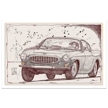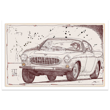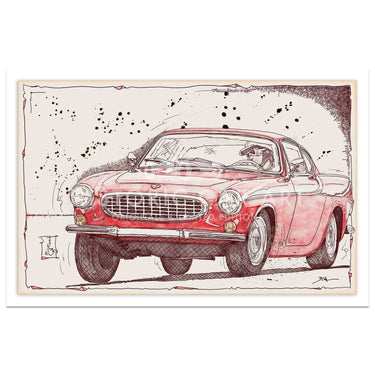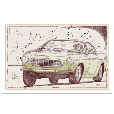 An art print of the Volvo P1800S, manufactured between 1961 and 1973. It became well known when it was used in the TV series The Saint & was driven by Roger Moore.