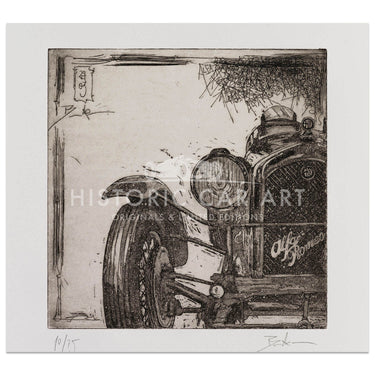 A hand printed etching of the Alfa Romeo 6C1750.