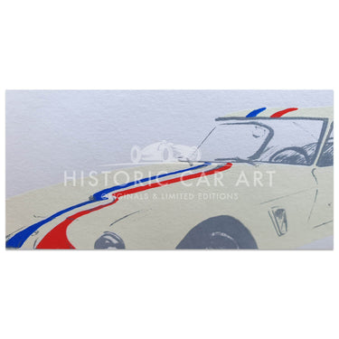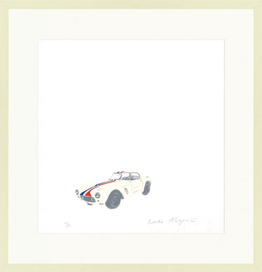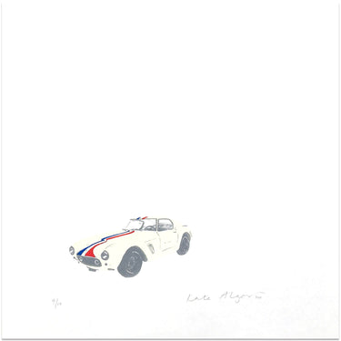 This edition uses hand-cut stencils, hand-drawings and 4-layers of inks. There is a slight sheen to the body of the car.
