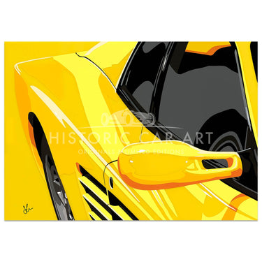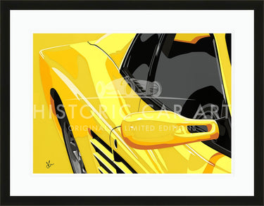 Ferrari Testarossa by Joel Clark in giallo. One of four art prints from the Speedicons Primary Colours Series