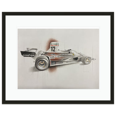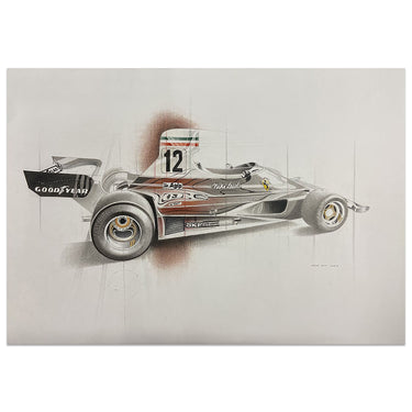 REVS ART fine art print of the 1975 championship winning Ferrari 312T driven by Niki Lauda. This is chassis 22, with the transversely mounted gearbox and flat 12 engine.