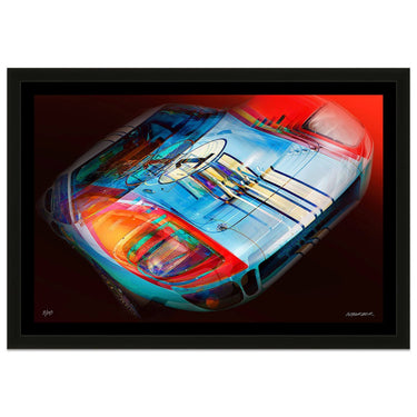 Over time, Barber has developed a collection of artwork of classic and contemporary cars. He creates the artworks as digital images, drawing and painting by hand on a tablet or screen before having a single large scale version printed onto a brushed aluminium panel.