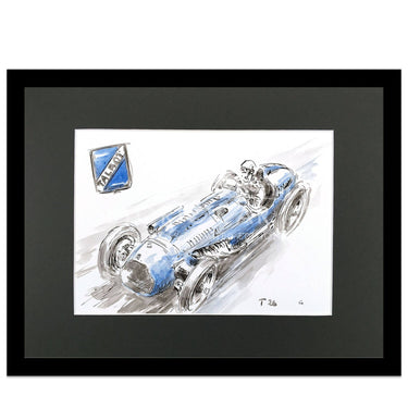 Talbot Lago's T26 competition debut at Monaco Grand Prix 1948 Original pen and ink wash.