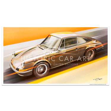 Limited Edition Print. 1972 Porsche 911S Art Print. 70's retro colours.