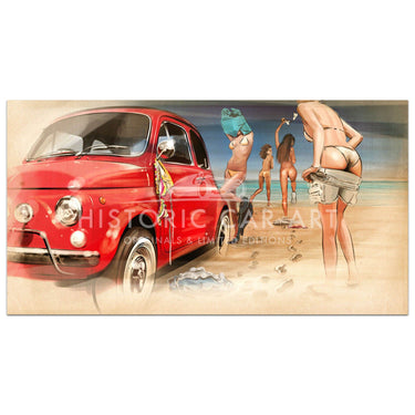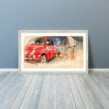 Limited Edition Print. Hey girls, what perfect transport to the beach for a summers afternoon and a spot of 'skinny dipping'!