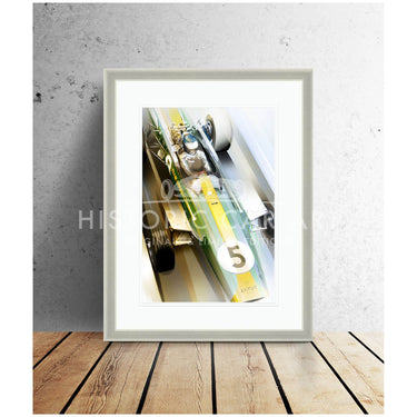Limited Edition Print. Double World Champion Jim Clark driving the Ford Cosworth powered Lotus 49.