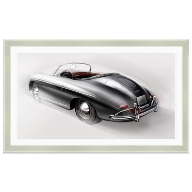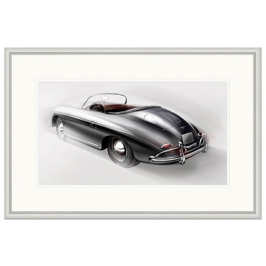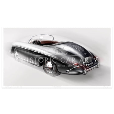 Contemporary art print of the Porsche 356 Speedster by designer Frederic Dams. Introduced in late 1954, the Speedster was one of the most desirable collector models.