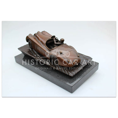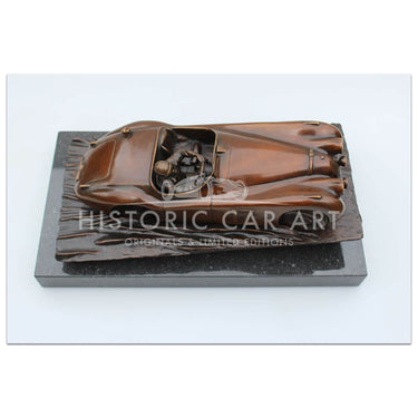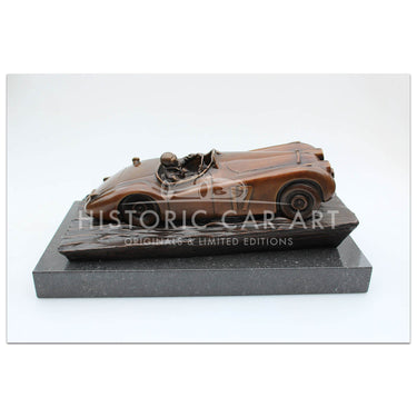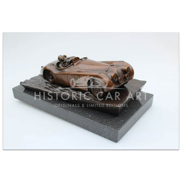 Bronze sculpture by Gary Smith showing one of the works entries for the 1950 Le Mans 24 hours race. Leslie Johnson driving car no. 17.