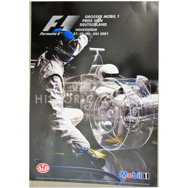 An original poster for the 2001 Formula 1 German Grand Prix at Hockenheim. The race was won by Ralf Schumacher of Williams-BMW.