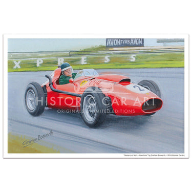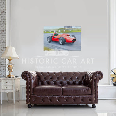 Mike Hawthorn and Ferrari 246 Dino classic racing car print available on paper or canvas.