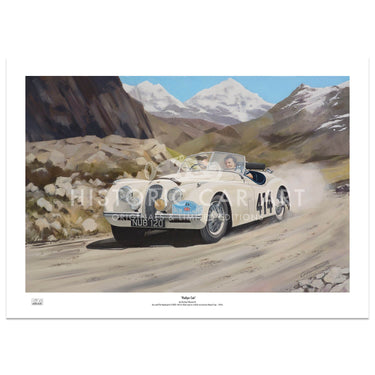 Limited Edition Print. Ian and Pat Appleyard in NUB 120 on their way to a third successive Alpine Cup - 1952.