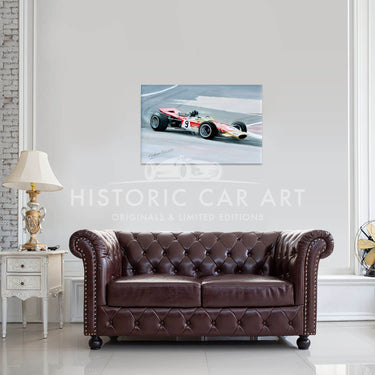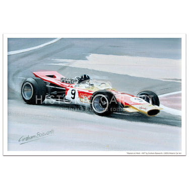 Graham Hill and Lotus 49C - Monaco Grand Prix 1968. Classic racing car print available on paper or canvas.