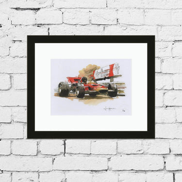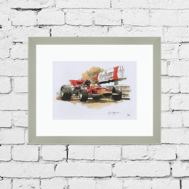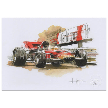 Having begun with photo-realism which Ketchell quickly found frustrating he moved towards his now recognisable impressionistic, semi-abstract style. “I was a fan of the French Impressionists, and thought it would be a good direction to capture speed.” Acrylics suited his new style and his bold captivating paintings were soon in demand: “Jim Clark  was my hero and the 1960’s and 30’s are my favourite periods. The shape of the subjects is a key factor and the big sports-prototypes such as the 917, T70 and GT40 have always excited me. The balance of danger against speed of the silver arrows – particularly the Auto Unions – is also part of the appeal.”