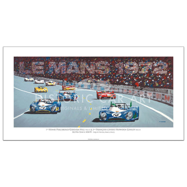 Limited Edition Print. The winning Matra-Simca MS670 #15 of Henri Pescarolo and Graham Hill, followed by the second place MS670 #14 of François Cevert and Howden Ganley. The third Matra-Simca is the MS660C #16 of Jean-Pierre Jabouille and David Hobbs.