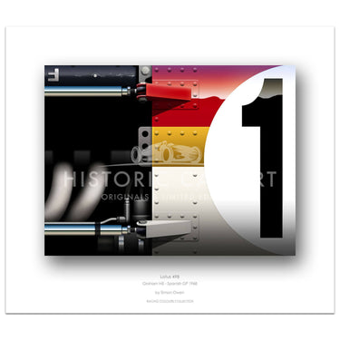 Limited Edition Print. 1968 Spanish Grand Prix Lotus 49B of Graham Hill.