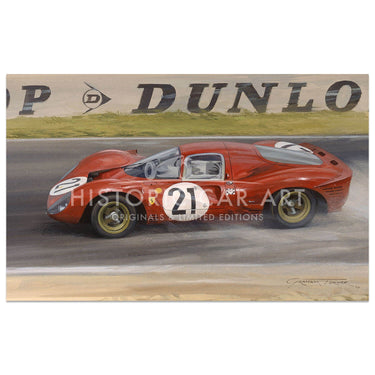 Limited edition print. Art print of the Ferrari 330 P4 of Scarfiotti and Parkes.