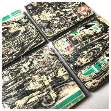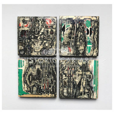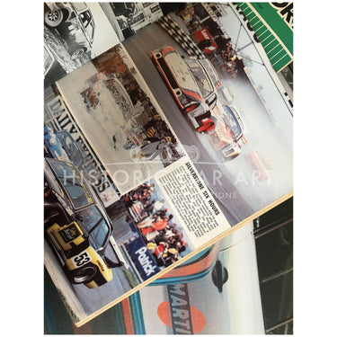 These coasters are made by local artist Hannah Lobley for Historic Car Art from recycled original Motorsport Magazines dating from 1975. This particular set has been made from magazines featuring Martini Sponsored cars - Porsche and Brabham. Each coaster is unique.