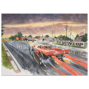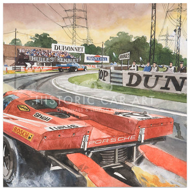 A beautiful limited edition print of the 1970 Le Mans 24 Hours winning Porsche 917K of Hans Hermann and Richard Attwood at the famous Mulsanne corner on Saturday afternoon.