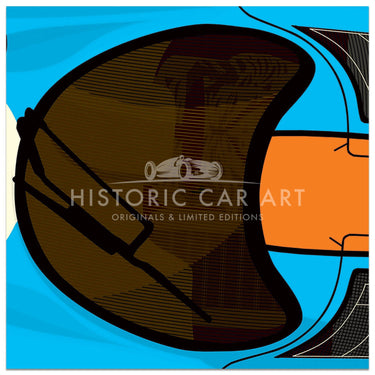 The artwork for each Studio Bilbey print is hand-drawn from scratch - including all the lettering and sponsors logo's, after extensive research into each cars race history and the graphics it carried. The result is the fresh, bold, clean-cut artwork you see here.
