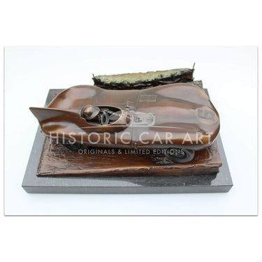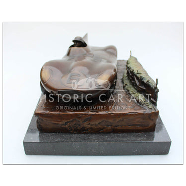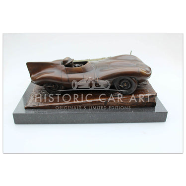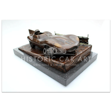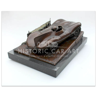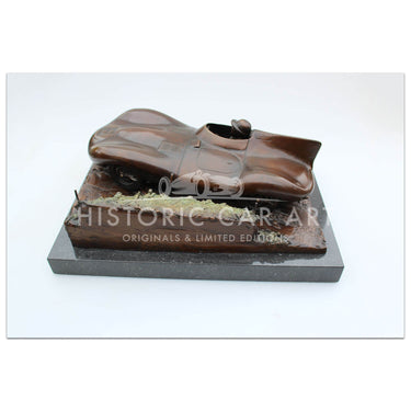 This bronze sculpture by Gary Smith features the Jaguar D-Type of Mike Hawthorn and Ivor Bueb, winners of the 1955 Le Mans 24 hours race. The sculpture shows Mike Hawthorn driving hard through the Esses at night.