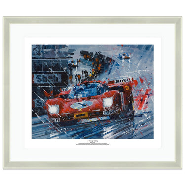 Limited Edition Print. 1970 BOAC 1000kms at Brands Hatch - the Ickx / Oliver Ferrari 512S on a rain soaked day, the eventual winning Rodriguez / Kinunnen Porsche 917K can be seen in the pits after being black flagged.