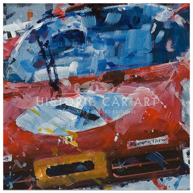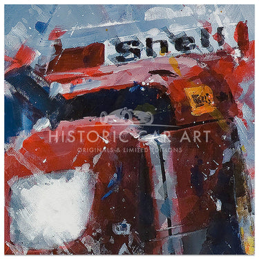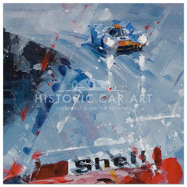 Having begun with photo-realism which Ketchell quickly found frustrating he moved towards his now recognisable impressionistic, semi-abstract style. “I was a fan of the French Impressionists, and thought it would be a good direction to capture speed.” Acrylics suited his new style and his bold captivating paintings were soon in demand: “Jim Clark was my hero and the 1960’s and 30’s are my favourite periods. The shape of the subjects is a key factor and the big sports-prototypes such as the 917, T70 and GT40 have always excited me. The balance of danger against speed of the silver arrows – particularly the Auto Unions – is also part of the appeal.”