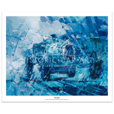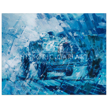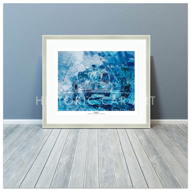 Having begun with photo-realism which Ketchell quickly found frustrating he moved towards his now recognisable impressionistic, semi-abstract style. “I was a fan of the French Impressionists, and thought it would be a good direction to capture speed.” Acrylics suited his new style and his bold captivating paintings were soon in demand: “Jim Clark was my hero and the 1960’s and 30’s are my favourite periods. The shape of the subjects is a key factor and the big sports-prototypes such as the 917, T70 and GT40 have always excited me. The balance of danger against speed of the silver arrows – particularly the Auto Unions – is also part of the appeal.”