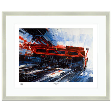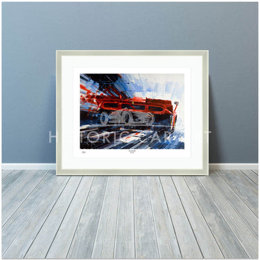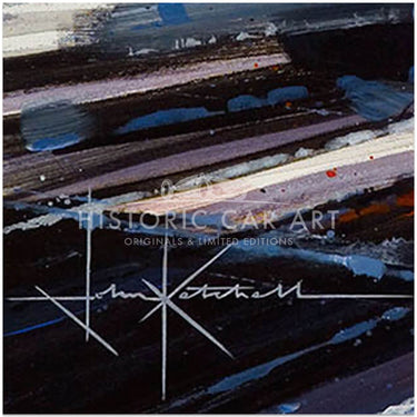 Having begun with photo-realism which Ketchell quickly found frustrating he moved towards his now recognisable impressionistic, semi-abstract style. “I was a fan of the French Impressionists, and thought it would be a good direction to capture speed.” Acrylics suited his new style and his bold captivating paintings were soon in demand: “Jim Clark was my hero and the 1960’s and 30’s are my favourite periods. The shape of the subjects is a key factor and the big sports-prototypes such as the 917, T70 and GT40 have always excited me. The balance of danger against speed of the silver arrows – particularly the Auto Unions – is also part of the appeal.”