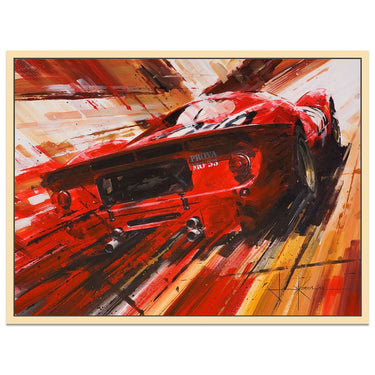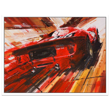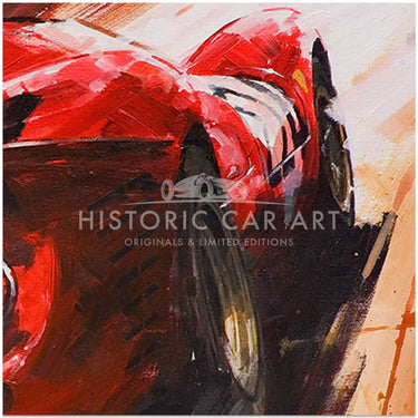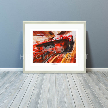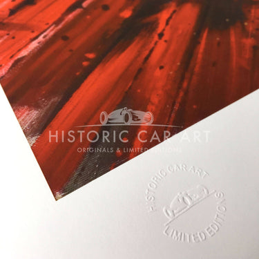 Having begun with photo-realism which Ketchell quickly found frustrating he moved towards his now recognisable impressionistic, semi-abstract style. “I was a fan of the French Impressionists, and thought it would be a good direction to capture speed.” Acrylics suited his new style and his bold captivating paintings were soon in demand: “Jim Clark was my hero and the 1960’s and 30’s are my favourite periods. The shape of the subjects is a key factor and the big sports-prototypes such as the 917, T70 and GT40 have always excited me. The balance of danger against speed of the silver arrows – particularly the Auto Unions – is also part of the appeal.”