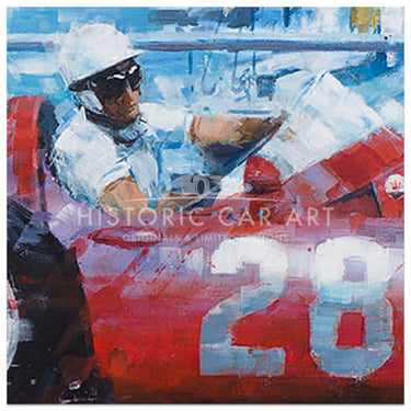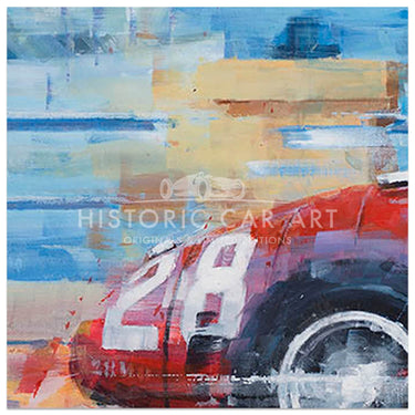Having begun with photo-realism which Ketchell quickly found frustrating he moved towards his now recognisable impressionistic, semi-abstract style. “I was a fan of the French Impressionists, and thought it would be a good direction to capture speed.” Acrylics suited his new style and his bold captivating paintings were soon in demand: “Jim Clark was my hero and the 1960’s and 30’s are my favourite periods. The shape of the subjects is a key factor and the big sports-prototypes such as the 917, T70 and GT40 have always excited me. The balance of danger against speed of the silver arrows – particularly the Auto Unions – is also part of the appeal.”