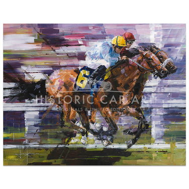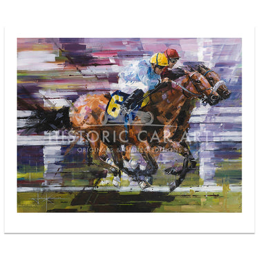 Limited edition print - Dynamic contemporary horse racing painting. Qatar and winestock colours.