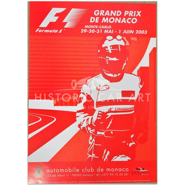 An original poster for the 2003 Monaco Grand Prix. The race was won by Juan Pablo Montoya for Williams.