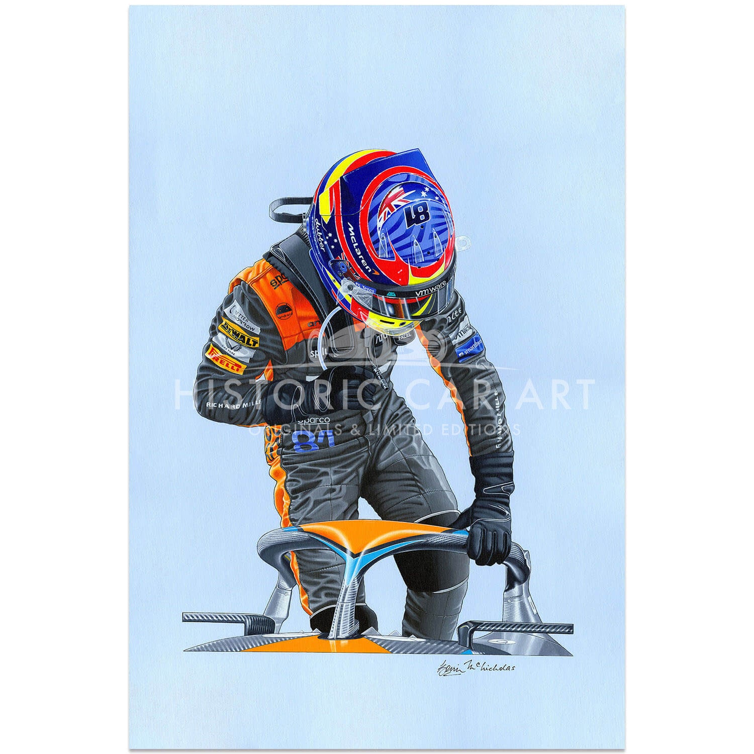 A fantastic original portrait painting by Kevin McNicholas of McLaren F1 driver Oscar Piastri.