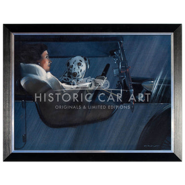 Original Painting. Wrapped up warm for a night out in a 1930 2 litre Lagonda with her Dalmatian dog.