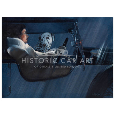 Limited Edition Print. Wrapped up warm for a night out in a 1930 2 litre Lagonda.