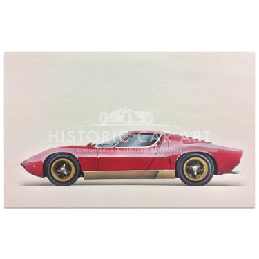 An original painting of a Lamborghini Miura for the price of a limited edition print.
