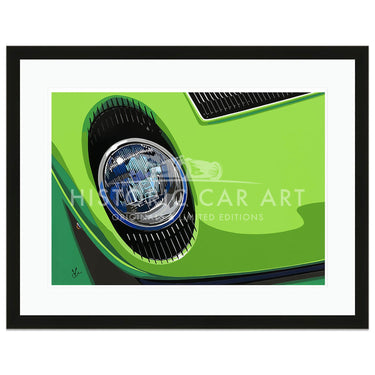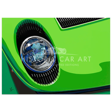 Lamborghini Miura by Joel Clark in lime green. One of four art prints from the Speedicons Primary Colours Series