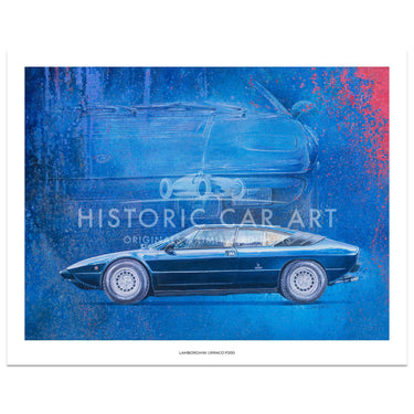 A limited edition print of the 1970s Lamborghini Urraco P200, by Simon Britnell.
