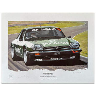 Limited edition print featuring the Jaguar TWR XJS. This was the victorious car driven by Win Percy and Chuck Nicholson during Round 3 of the 1984 European Touring Car Championship at Donington, marking the season's first dry race!