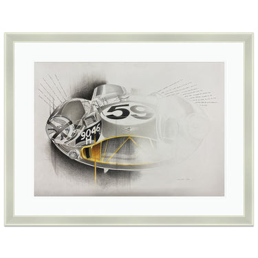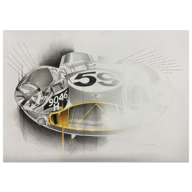 REVS ART fine art print of the 1953 Aston Martin DB3S - chassis DB3S/5. I must confess that I think the DB3S is a superior shape to the later DBR1. The latter car is more famous mainly for winning the 1959 World Sportscar Championship which included the long elusive win for AM at Le Mans. However, the DB3S is just such a perfect looking racing car. There is the delicate tight crease line that runs along the top of the wings, fading out as it reaches the headlamps, as well as the beautifully formed grill - a shape that Frank Feeley continued to develop to the recognisable Aston Martin face we still see on todays cars. Every bit as beautiful as its predecessor was ungainly (the DB3), this was one of those cars that looked fast even when it was standing still.