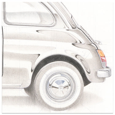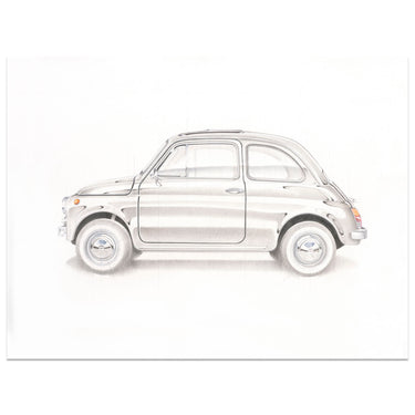 REVS ART fine art print of the wonderful Fiat 500. If Astons have been a first love of mine, then the Fiat 500 would be the second car in my garage. Small, delightful to look at, more Italian than pasta, with that characterful air-cooled engine - there is nothing else like it. And that is before we even mention the Abarth version........