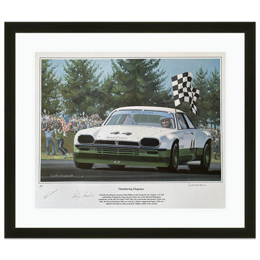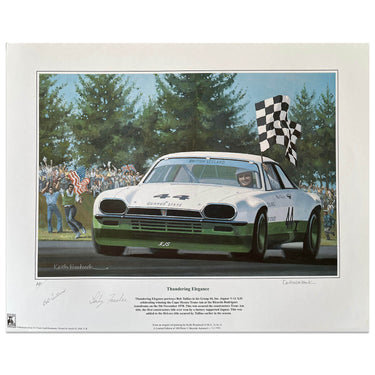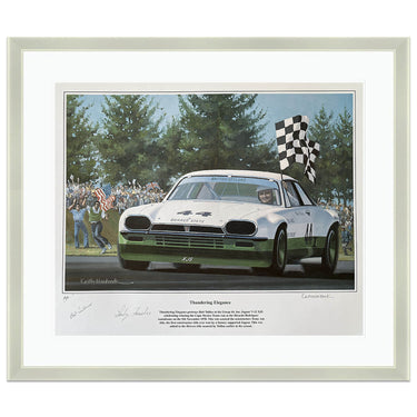 Limited edition print featuring Bob Tullius in his Jaguar V-12 XJS, celebrating his win at the Copa Mexico Trans-Am in 1978.