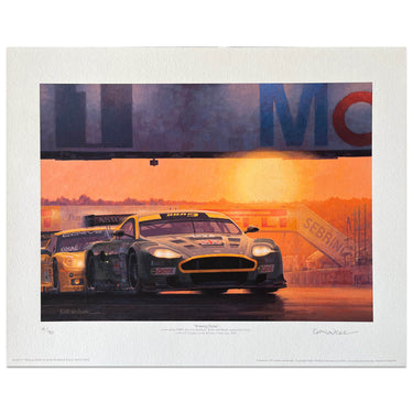 This limited edition print features the 1st placed Aston Martin DBR9, driven by Brabham, Turer and Ortelli, in the GT1 Category at the 2005 Sebring 12 hour race.