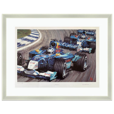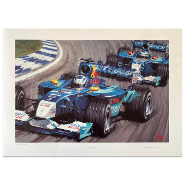 Limited Edition Print. Red Bulls at the 2001 British Grand Prix, driven by Jos Verstappen and Enrique Bernoldi.