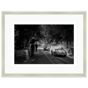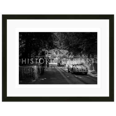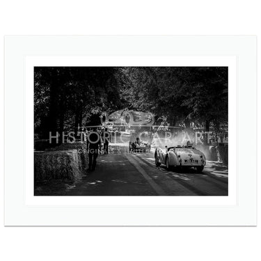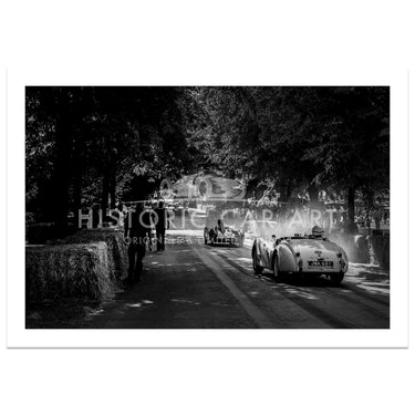Fine Art Photography by Lou Boileau. A wonderful, atmospheric shot of a Jaguar XK120 leaving the startline at the Goodwood Festival of Speed.