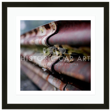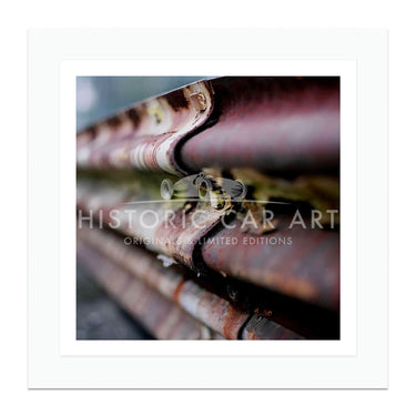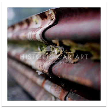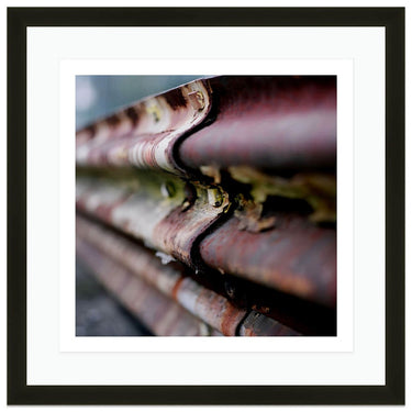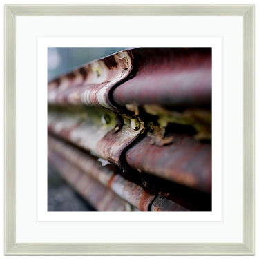 Fine Art Photography by Lou Boileau. An semi-abstract close up shot of the Monza old circuit rusting barrier. Shot on film.