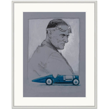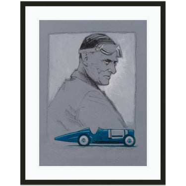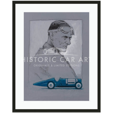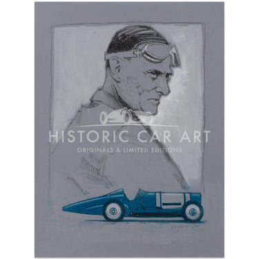Art print of Malcolm Campbell and Blue Bird. Malcolm Campbell set his first Land Speed Record of 146.16mph driving the 350hp Sunbeam 'Blue Bird' at Pendine Sands on 25th September 1924.