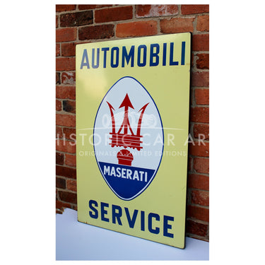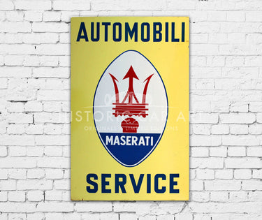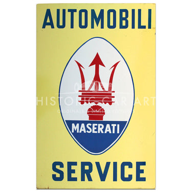 An original Maserati dealers garage service sign. "Automobili Maserati Service"